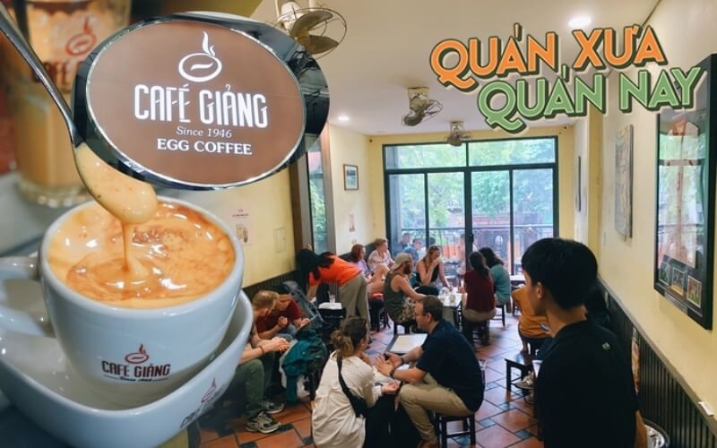 Egg coffee (Cà Phê Trứng) is a unique Hanoi specialty made with egg yolks, sugar, condensed milk, and coffee, known for its rich and creamy texture, and can be tried at Giang Cafe in Hanoi.