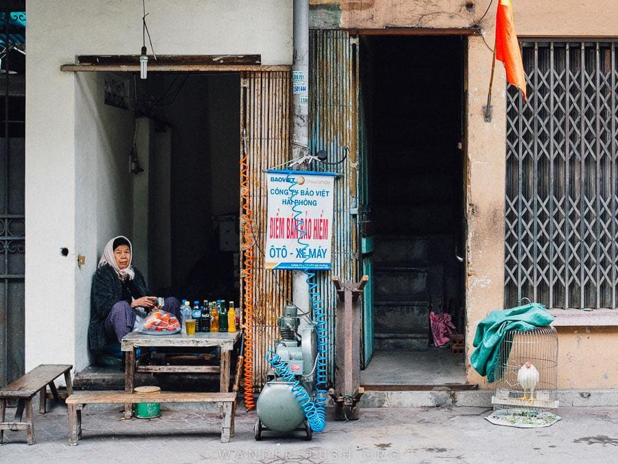 A woman sits inside her shop in downtown Hai Phong city, Vietnam.