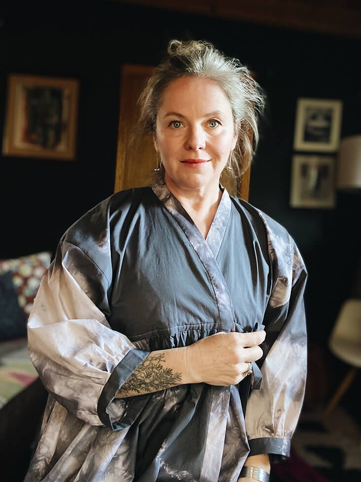 Dress made with hand dyed Percale White Softened Lightweight Linen
