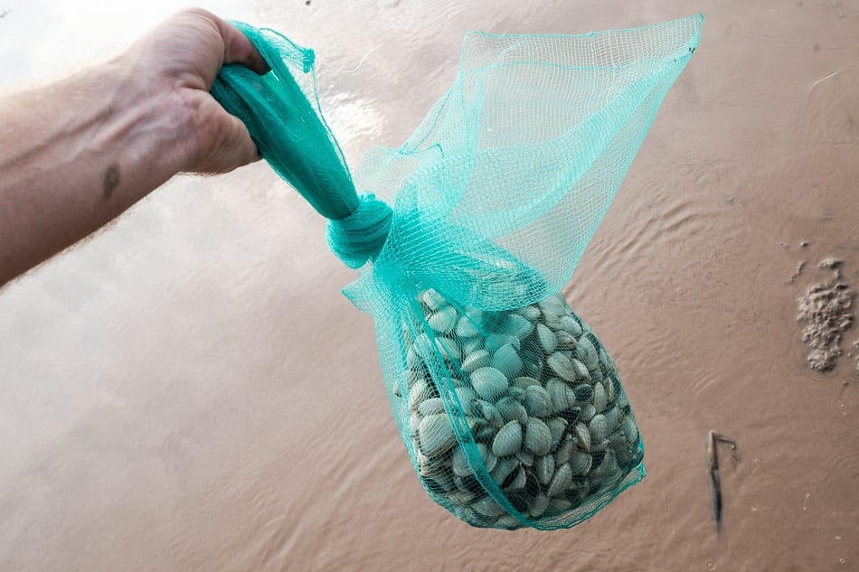 Vietnamese people harvesting clams in Thai Binh, North Vietnam