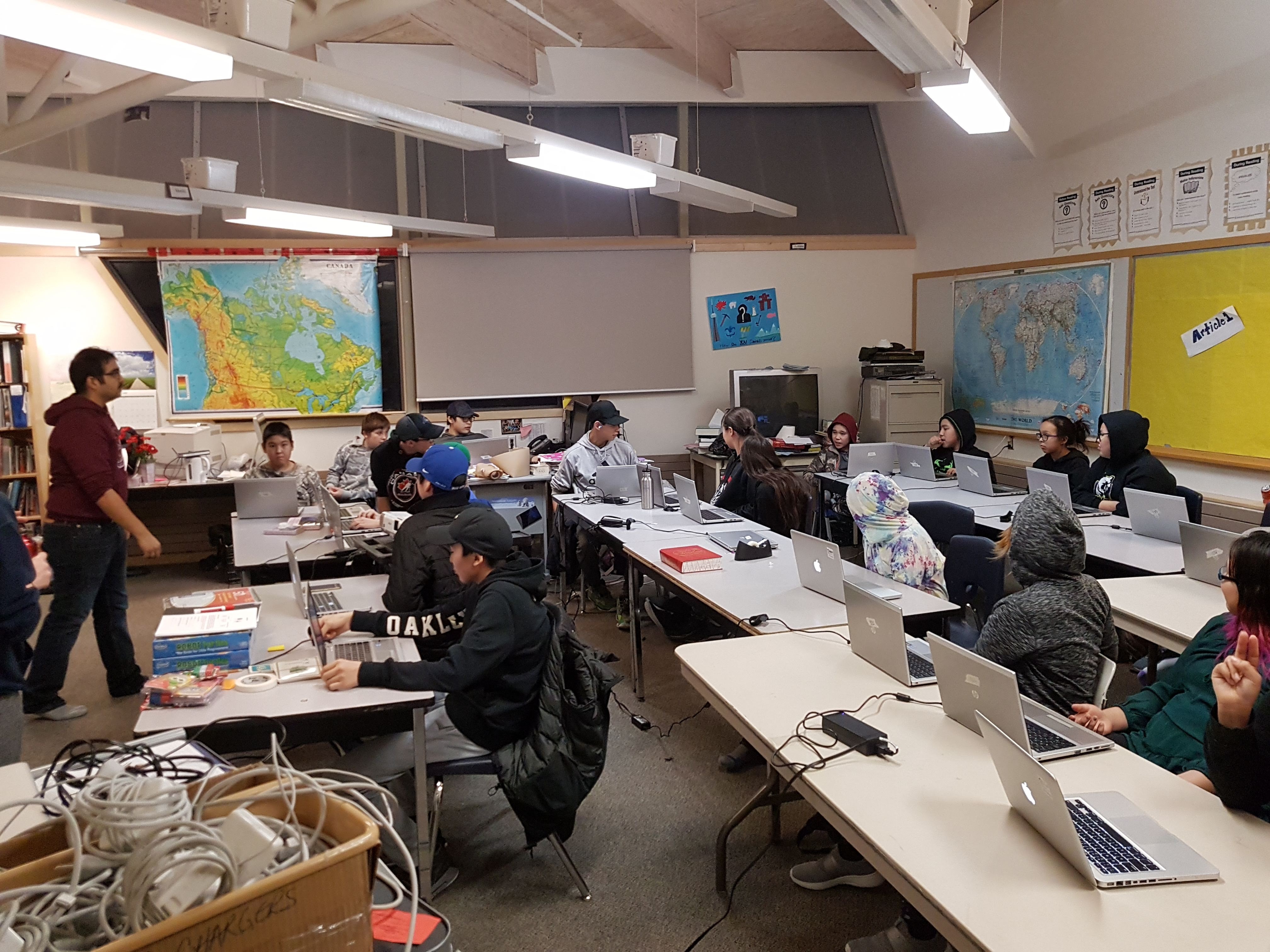 Students on laptops in a classroom in Nunavut, Canada, demonstrating access to technology and education in a remote community.