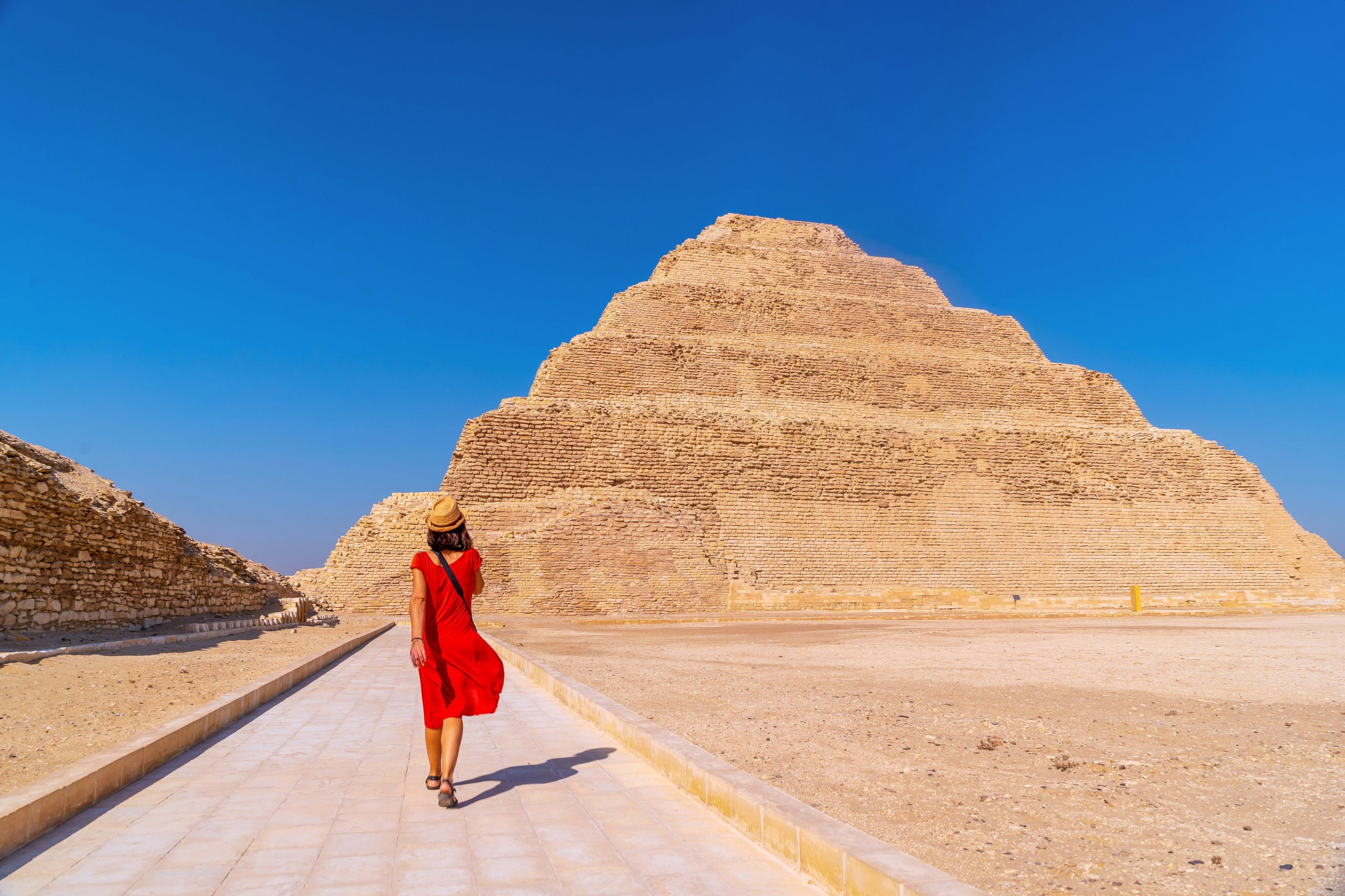 A visitor marvels at the Step Pyramid of Djoser, a testament to ancient Egyptian architectural innovation.