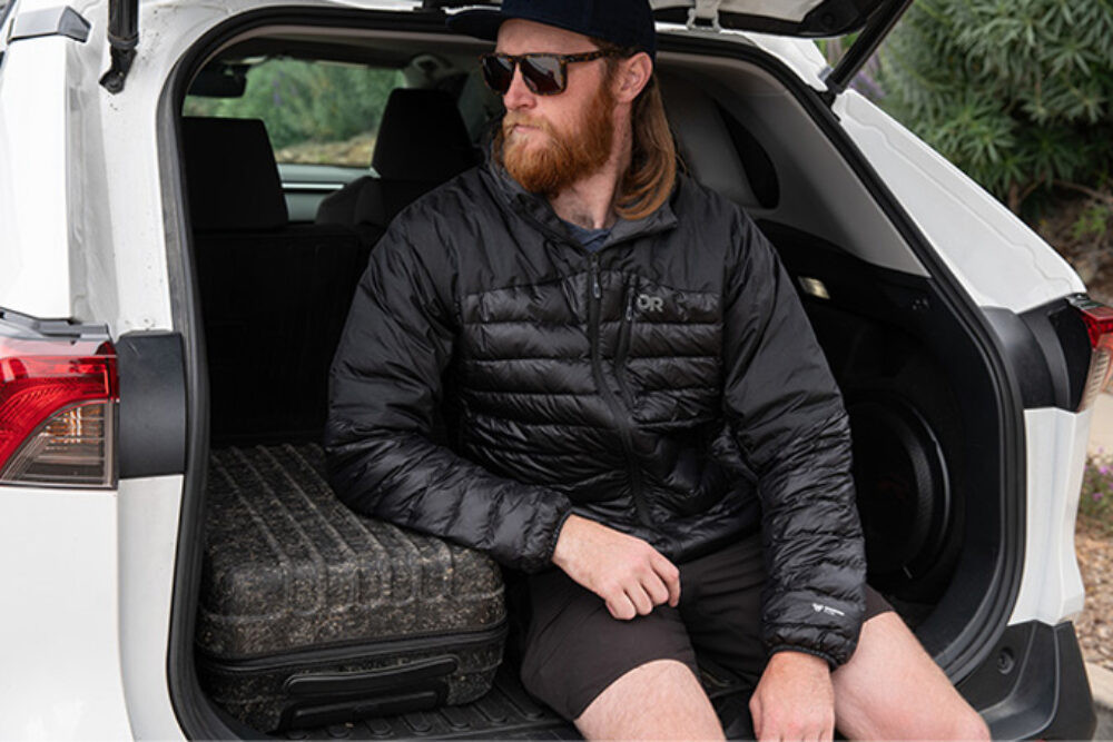 Verdict: Our favorite down jacket around, the Outdoor Research Helium is a lightweight, warm, and stylish hoodie that can pack away into your suitcase with ease. Bolstered on the hood and shoulders for waterproofness, the coat has some finicky pockets but was among the best-fitting options we tried out. If you’re traveling in colder climates, consider this one.