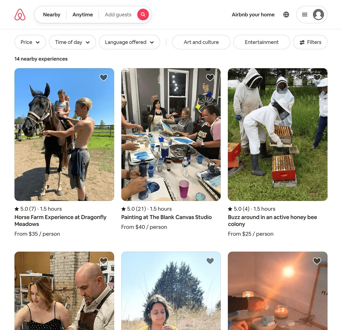 Airbnb’s Experiences feature allows travelers to connect with locals who offer unique activities. For example, Airbnb currently offers around 50,000 experiences.