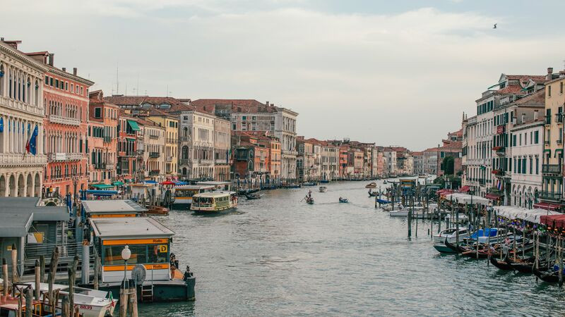 Bustling canal waters in Venice flanked by colorful buildings, capturing the essence of the city's unique charm and vibrant atmosphere