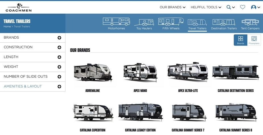 Coachmen: Coachmen offers a wide range of RVs, including Class A, B, and C motorhomes, as well as travel trailers and fifth wheels. They are known for providing reliable, affordable RVs with good value. Noteworthy features include affordability, an extensive variety of floor plans, and a good balance between luxury and practicality. Popular models include Freedom Express, Apex Ultra-Lite, and Catalina.